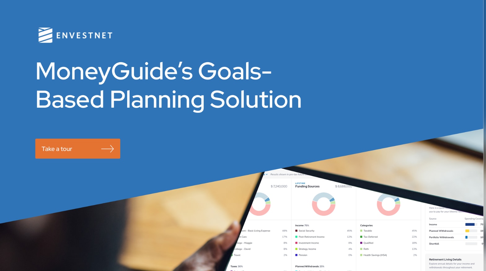 Take a tour through the MoneyGuide’s goal-based planning solution. A robust, advisor-driven approach that goes beyond basic planning, we help advisors collaborate more closely with clients on achieving the goals that are most important to them.